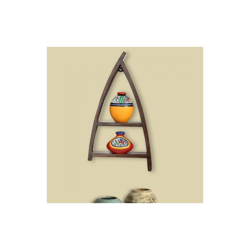 This classy wall shelf has been made to add life to your wall. In like manner has 2 terracotta pots on this rack. The wooden rack adds a class and sheen to the wall or the divider.